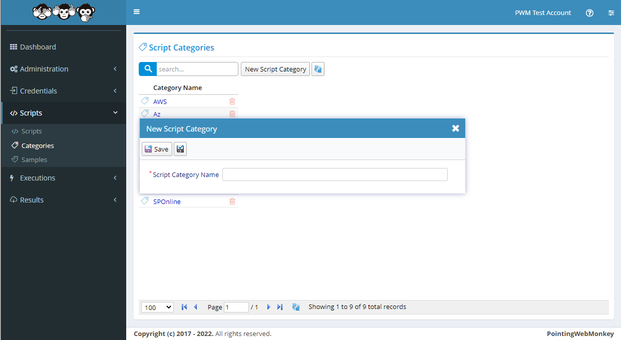 Once saved it will appear in the "Script Categories" list under the "Category Name" entered
