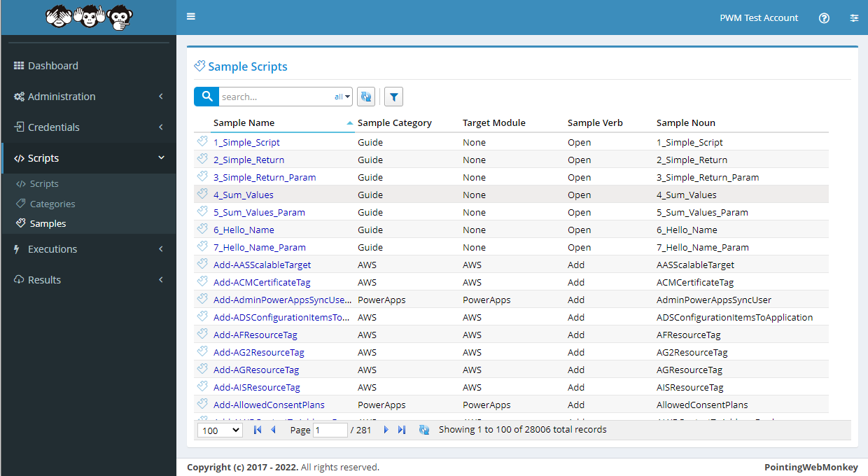 Clicking either of the three options available, will take you to each corresponding "Scripts" section