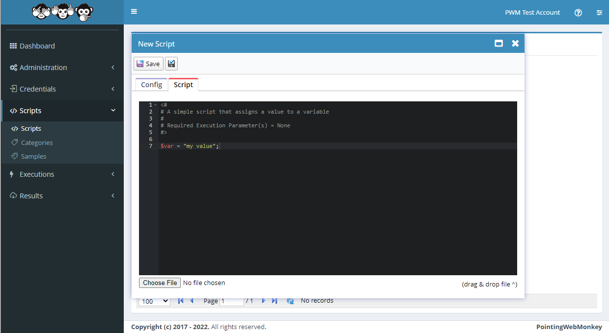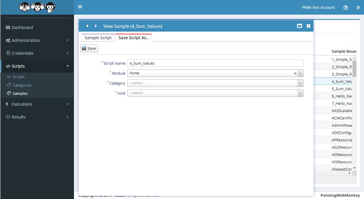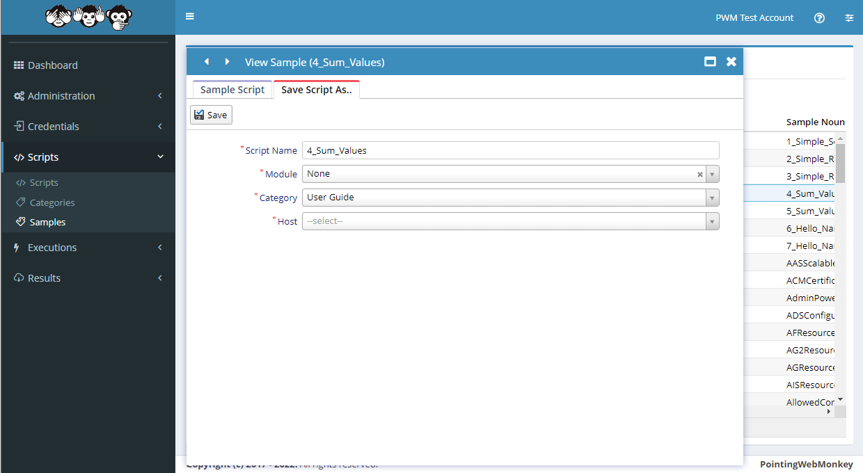 Once saved the newly created script will appear in the "Scripts" list under the "Script Name" entered